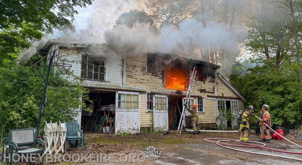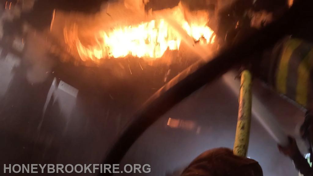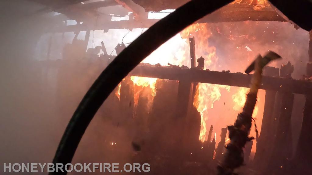 At 16:39 on Wednesday afternoon, the HBFC was due as the RIT assignment assisting Co. 49 (EBFC) on the 1300 BLK of Horseshoe Pike, in East Brandywine Township for a reported dwelling. Chester County Fireboard was receiving multiple calls stating flames seen from the rear of the residence, and a large column of smoke in the area. Deputy 49 arrived and reported a barn that was fully involved, and established the Horseshoe Pike command. First arriving units from EBFC initiated the fire attack and established their own water supply via a nearby hydrant. R33 with 8 personnel arrived and established the RIT assignment on the A/B corner of the structure. E331 was put to work by command on arrival, stretching an additional line from E492 to the second division via a bravo side ladder and assisted with opening up and suppression efforts. When the RIT assignment was stood down, and the crew from R33 helped open up and conduct overhaul efforts as well. Command placed the fire under control at 17:47 hours, and Honey Brook units would be released a short time later.