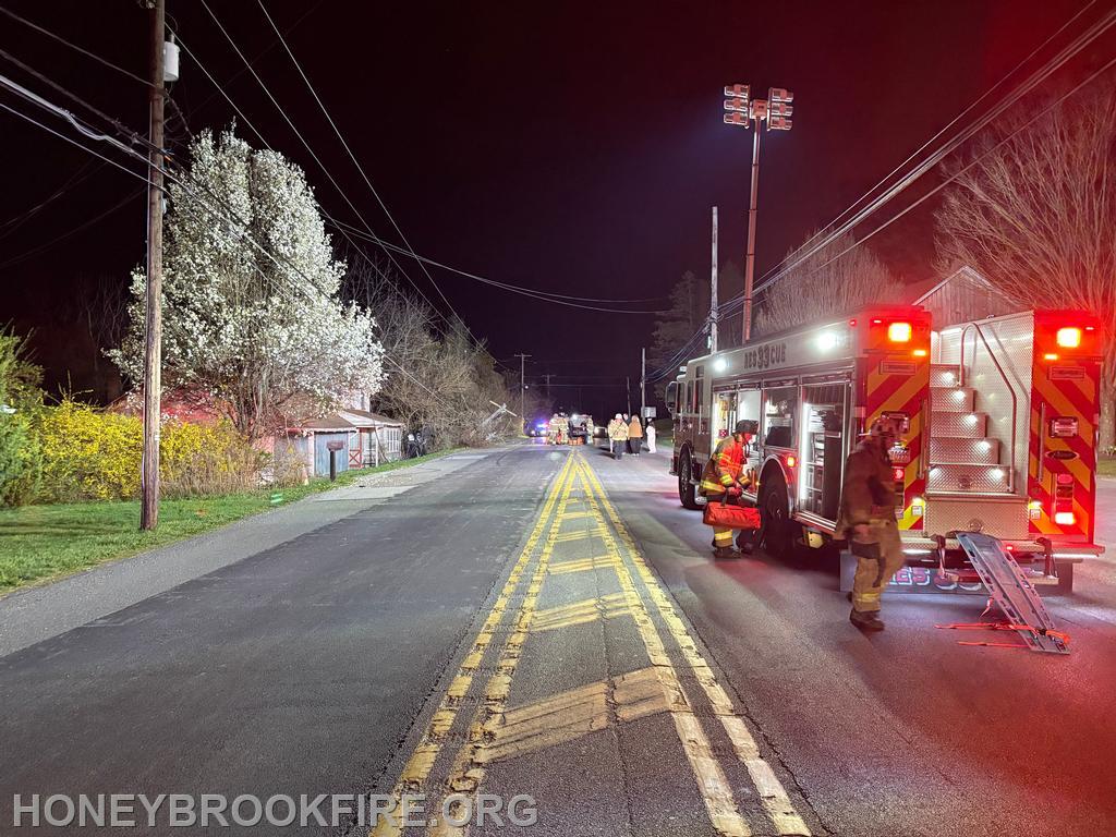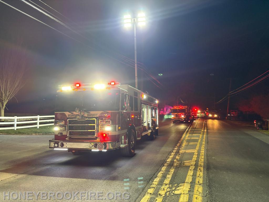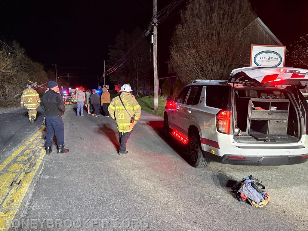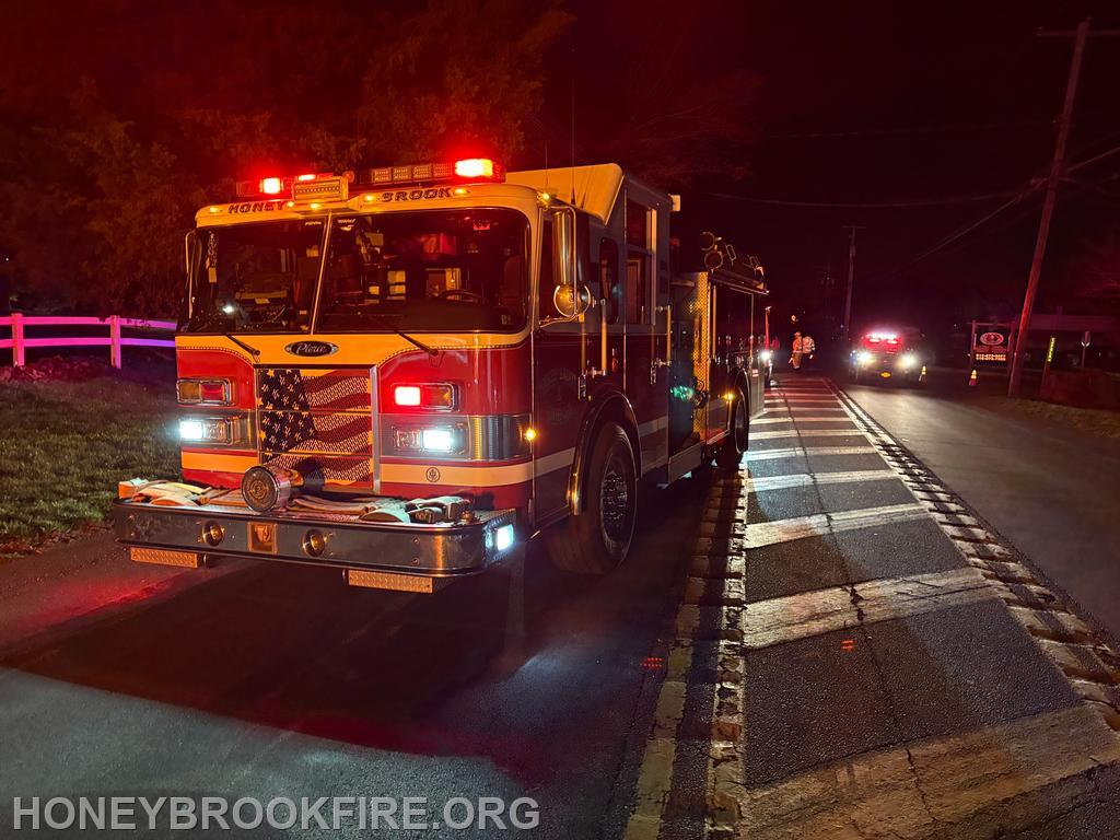 At 20:41 last evening, Station 33 along with EMS were dispatched to the 2200 BLK of Horseshoe Pike, in Honey Brook Township for a reported motor vehicle accident. Crews were still on-station following an earlier incident, with both Chief 33 and Rescue 33 making the response roughly sixty seconds from dispatch.