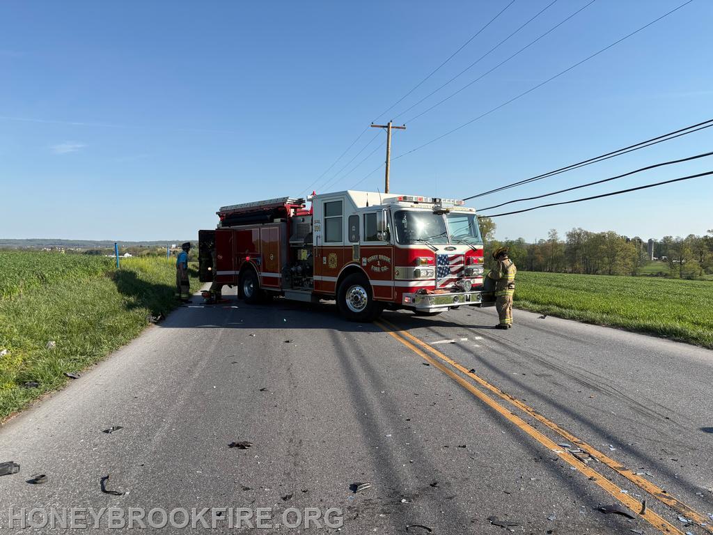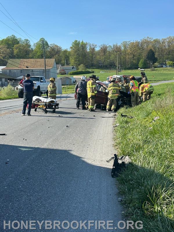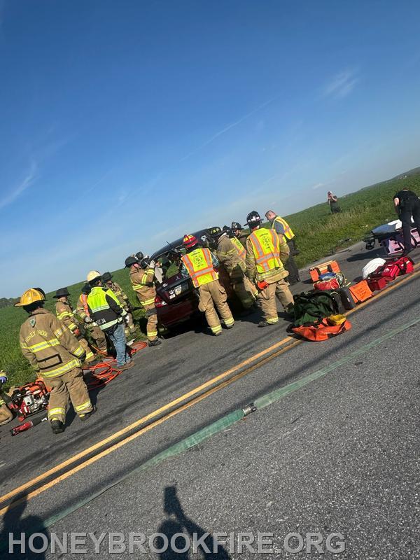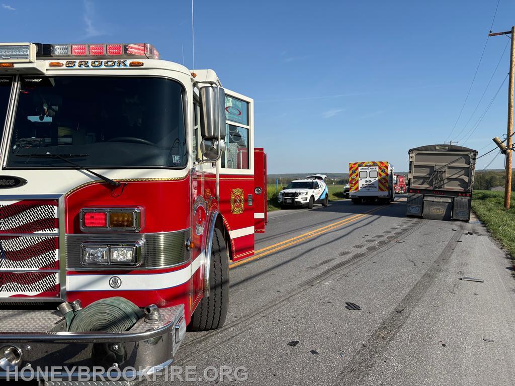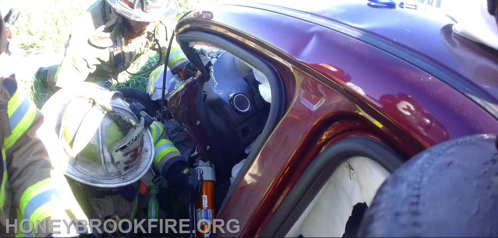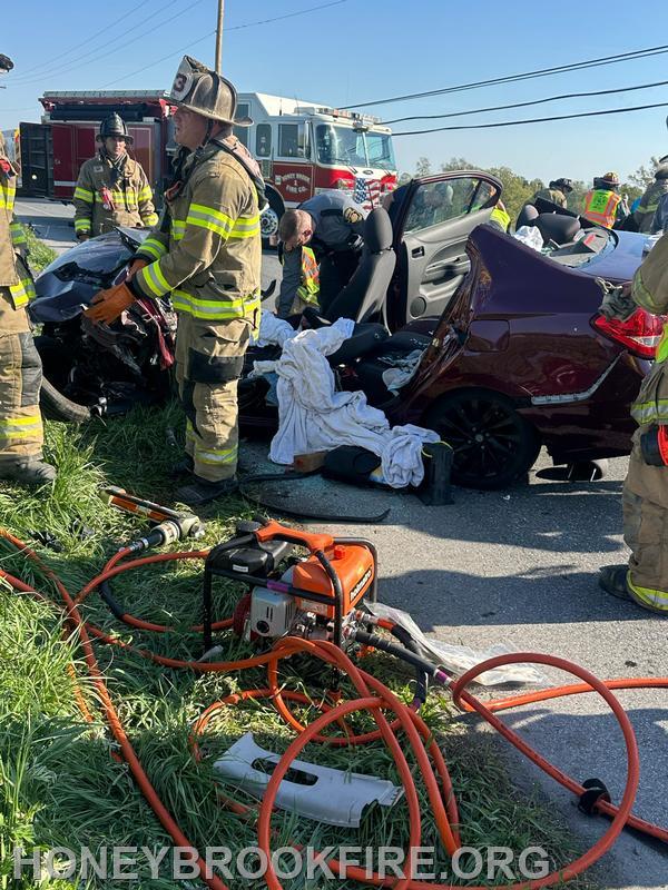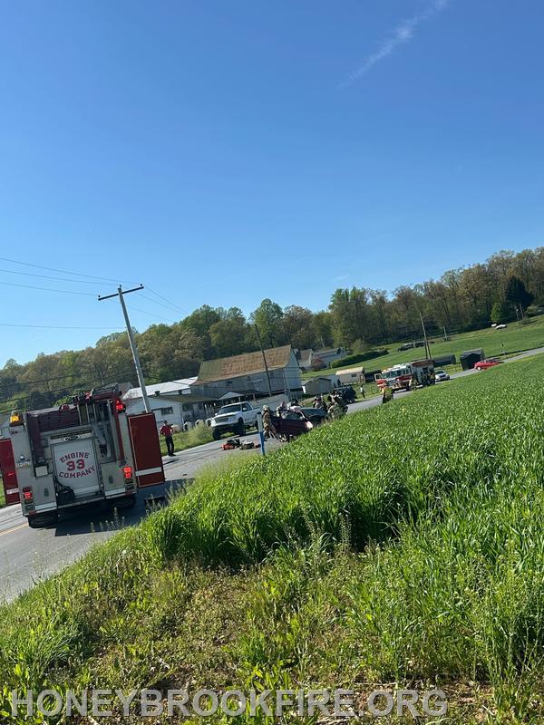At 16:40 in the afternoon on Thursday, Station 33 along with EMS and Lancaster Squad 34 were dispatched to the 600 BLK of Twin County Road, in Honey Brook Township for motor vehicle accident reported with entrapment. Engine 33-1 with a crew of six, arrived first to find a tractor trailer vs. a small sedan, and confirmed its operator was trapped. Lieutenant 33B (Riehl) established the initial command while the crew from E331 stabilized the vehicle, initiated patient care, and removed the driver side door. Ultimately, due to the severity of the extrication, crews would remove the roof and roll the dash to safely extricate the patient from the vehicle, who was transported to a local area hospital. Fire Police units from 33 and Lancaster 34 would keep the roadway shutdown for several hours before it could be safely reopened. We'd like to that our mutual aid partners from the Caernarvon Fire Company (L34), Tower Health (93), and EHBEMS (89) for their assistance with this incident. Chief 33 held the Twin County Road Command.